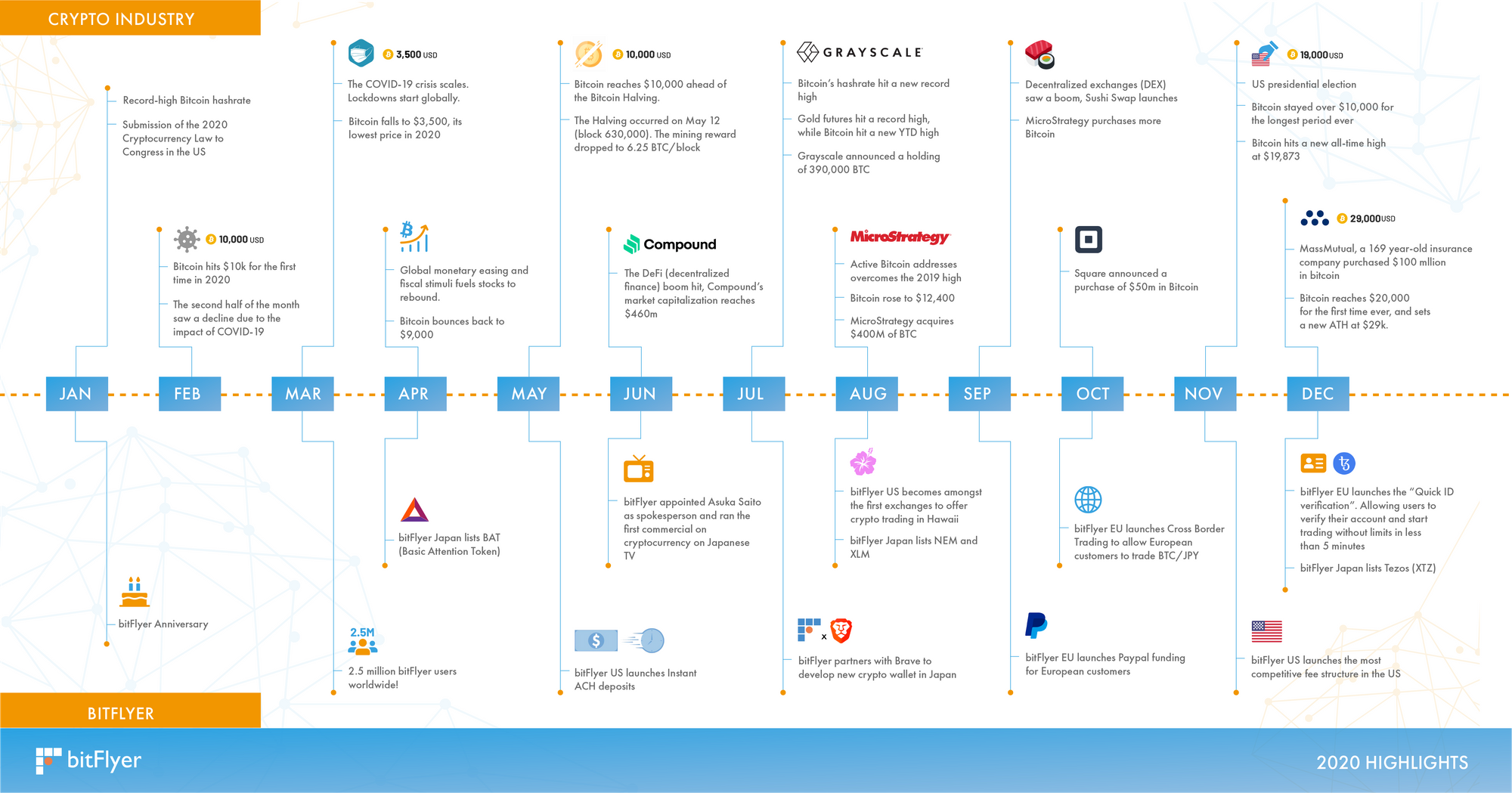 2020 wrap up: the most important bitFlyer and crypto events Jan 6, 2021 1 min read Our products To celebrate upcoming year, we prepared the summary of bitFlyer Group achievements in 2020 and important crypto events. We must admit it was quite a year! Let's hope 2021 will bring us even more things to celebrate. Already a bitFlyer customer? Login! New to bitFlyer? Register now! bitFlyer Europe Website Facebook Twitter More posts