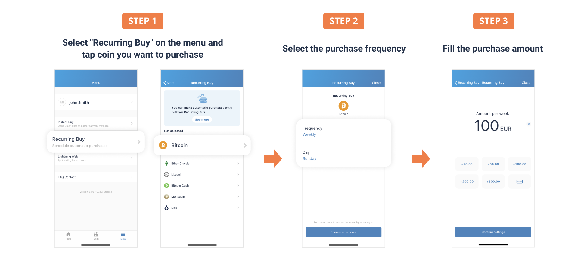 The recurring buy feature is available on our mobile app "bitFlyer wallet" (iOS, Android)