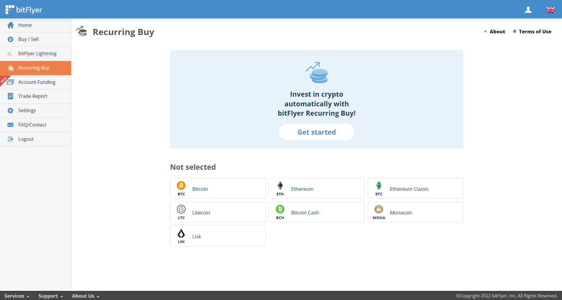 Apart from Web, our recurring buy feature is also available on our mobile app "bitFlyer wallet" (iOS, Android).
